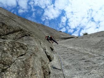 Drugiego dnia pobytu w Paklenicy z powodu możliwych opadów, wybieramy drogę Ljubljanski w górnej, niższej części Anica Kuk. Droga jest jednym z polecanych klasyków (chociaż informacji o niej mało), oferuje 220 metrów wspinania wzdłuż przełamania północnej ściany. Z opisu wynika, że najtrudniejszy fragment to wymagająca rysa za 6a+ (górskie 7-). Problemem może być odnalezienie miejsca w którym droga startuje – nam zabrało to dużo sił i czasu, przez co finalnie nie wyrobiliśmy się przed deszczem i musieliśmy się wycofać. Mimo to zdążyliśmy jeszcze przejść inną drogę, jedną z paklenicowych perełek – Karabore na dolnej części Anićy Kuk zwanej Stup. Sobota i niedziela niestety spisane zostały na straty – prawie całą Europę ogarnął niż, wróciliśmy więc do kraju.