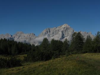 Zauroczony Monte Pelmo postanawiam zdobyć ten szczyt 😊 Do schroniska położonym u stóp góry docieram razem z Ulą, w ścianę wchodzę już sam. Do pokonania mam słynną Półkę Balla, nazwaną tak na cześć pierwszego zdobywcy Pelmo. Jej przejście dostarcza dużo emocji – trawers ściany jest bardzo „powietrzny” i trzeba uważać na każdym kroku, tym bardziej gdy się nie asekuruje. Po wyjściu na płaskowyż jest już łatwiej, bojąc się czy pogoda wytrzyma zasuwam do góry ile sił w nogach. Na szczycie spotykam parę przewodników, ucinam krótką pogawędkę, proszę o zdjęcie i gonię w dół – czeka mnie ponowne przejście Półki bo jest to jedyna „normalna” droga wyprowadzająca ze ściany. Przy schronisku dołączam do Uli, jemy obiad i pijemy pyszną włoską kawę, po czym kolejny raz już po ciemku docieramy do wynajętego mieszkania.