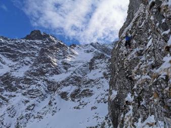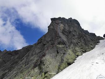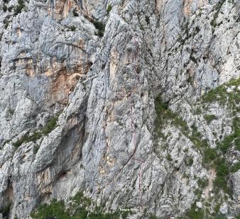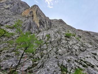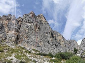 Gdy po zakończeniu klubowego obozu okazuje się, że przez kilka dni w Dolomitach będzie słonecznie, postanawiamy w ramach dogrywki wybrać się na południową ścianę Marmolady. Na ten wielki skalny mur wracamy po dwóch latach - za pierwszym razem wybrana linia (Don Quixote, relacja TUTAJ) nie zachwyciła urodą, tym razem ma być jednak inaczej, kombinacja Vinatzer-Messner jest bowiem uważana za jedną z ładniejszych i ciekawszych spośród tych bardziej przystępnych (oryginalna wycena to VII-, współcześnie ok. 6b+/VII+). Droga Vinatzera w dolnej części ściany Punta Rocca prowadzi kominami i zacięciami, wyżej charakter wspinania zmienia się z fizycznego w techniczny – startująca ze „Środkowej Półki” Direttissima Messnera przecina wielkie połogie płyty.